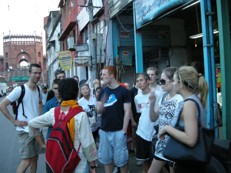 A group of students from Denmark on their first trip to India joined us for a heritage walk in old Delhi on Sunday evening. The old city of Delhi is the capital built by the Mughal emperor Shahjahan, who named the new capital after himself, Shahjahanabad. The Red Fort was his palace-fort complex and Jama Masjid the congregation mosque of the city.